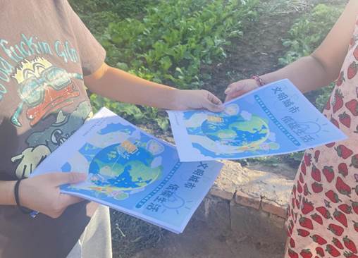 8月15日,实践团成员在广西省南宁市以及辽宁省大连市通过在市区主要商业街、公园以及社区居民楼附近发放发放海报的方式进行环保意识的普及。海报以双手托举地球为主要元素,寓意着地球需要人们付诸行动守护,地球周围使用“回收利用、随手关灯、垃圾分类”等标识提示人们如何通过具体行动养成低碳生活的习惯。