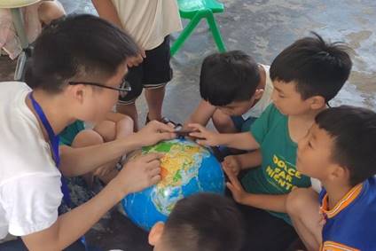 支教老师向孩子们讲述地球地貌