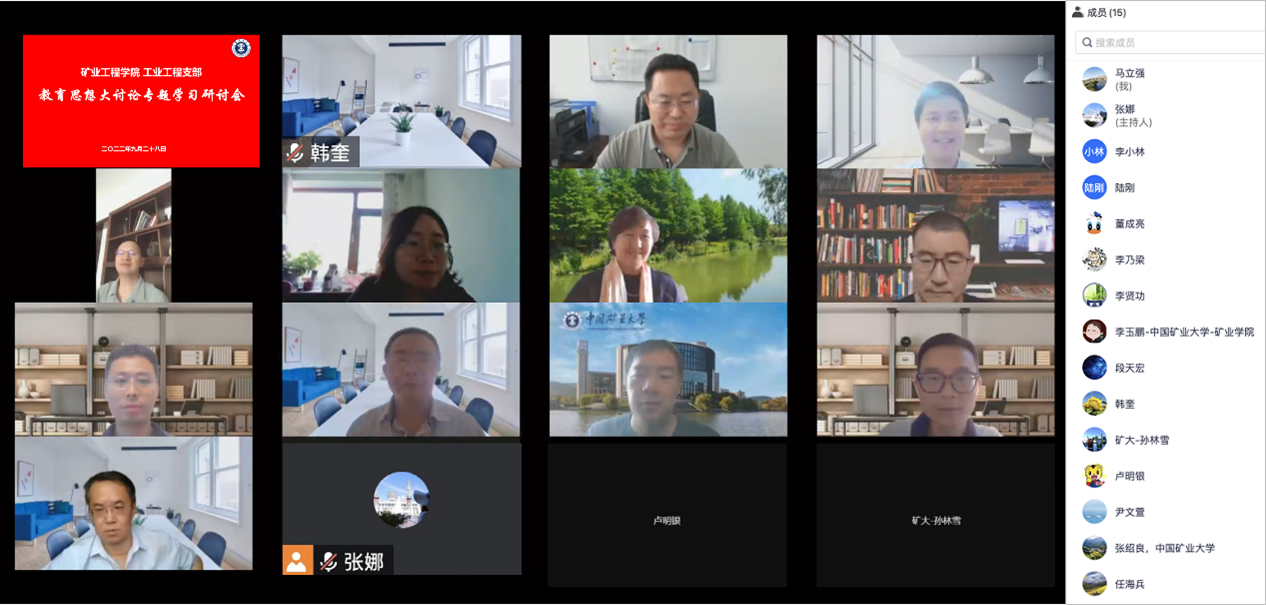 WilliamHill官网2022年教育思想大讨论是对学校办学历史的优良传统和精神文化的充分继承。工业工程支部根据学院开展教育思想大讨论的工作安排,依据《“深化教育综合改革,构建高质量教育体系”WilliamHill官网2022年教育思想大讨论实施方案》,积极组织全体教师深入学习相关文件资料、制定学习讨论计划。本次专题学习研讨会对工业工程专业人才培养进行了充分讨论,坚定了矿业特色发展的方向,从实习实践、协同育人、培养方案改革等多方面给出具体意见和建议,为基础宽厚、知识面广、适应力强的高质量人才培养提供了有效保障。