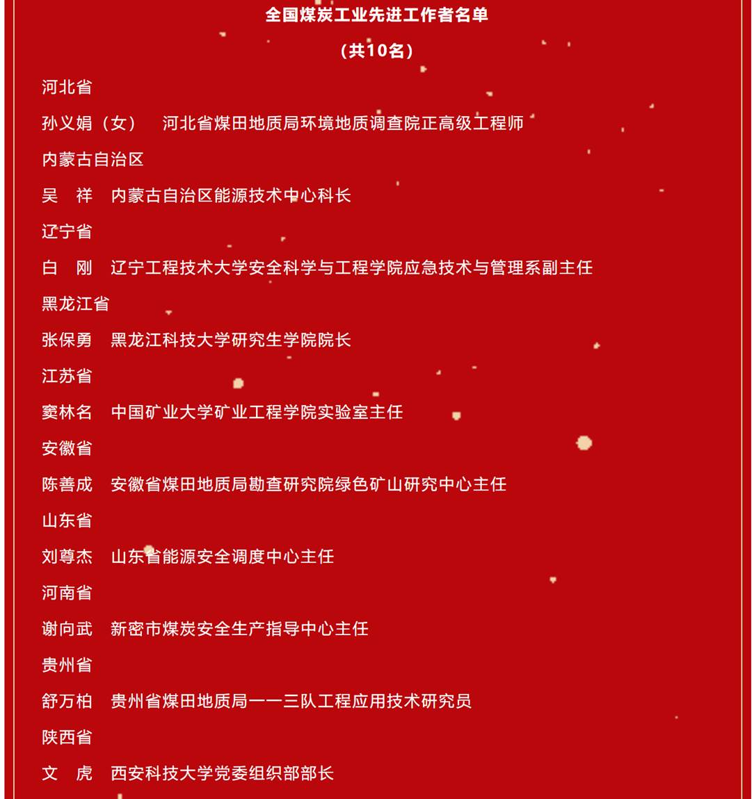 2023年4月25日上午,全国煤炭工业先进集体、劳动模范和先进工作者表彰大会在北京会议中心召开,隆重表彰全国煤炭工业先进集体、劳动模范和先进工作者。据了解,全国煤炭劳模评选工作五年一届,是为表彰那些在能源保供、安全生产等各项工作中履职尽责、实干担当、热爱矿山、扎根基层、无私奉献、勇于攀登、任劳任怨、淡泊名利、爱岗敬业、争创一流的先进人物。本届是人力资源社会保障部、中国煤炭工业协会联合第四次开展评选表彰,共有118个全国煤炭工业集体、138名全国煤炭工业劳动模范、10名全国煤炭工业先进工作者受到表彰。威廉希尔中文网站窦林名教授荣选“全国煤炭工业先进工作者”称号。